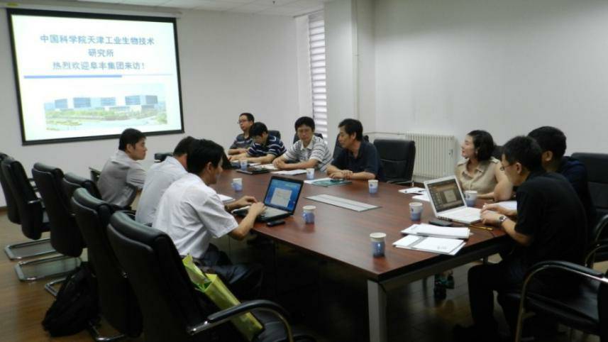 中科院天津生物所马延和所长对李总一行的到来表示热烈欢迎,并介绍了研究所研究领域布局,创新能力,建设进展,产学研合作及具有产业化前景的重大项目等情况。李总对研究所专家教授在中国生物产业研究做出的贡献表示敬佩,并就“生物发酵产业化发展前景”做了技术汇报以及今后企业技术需要做了介绍。