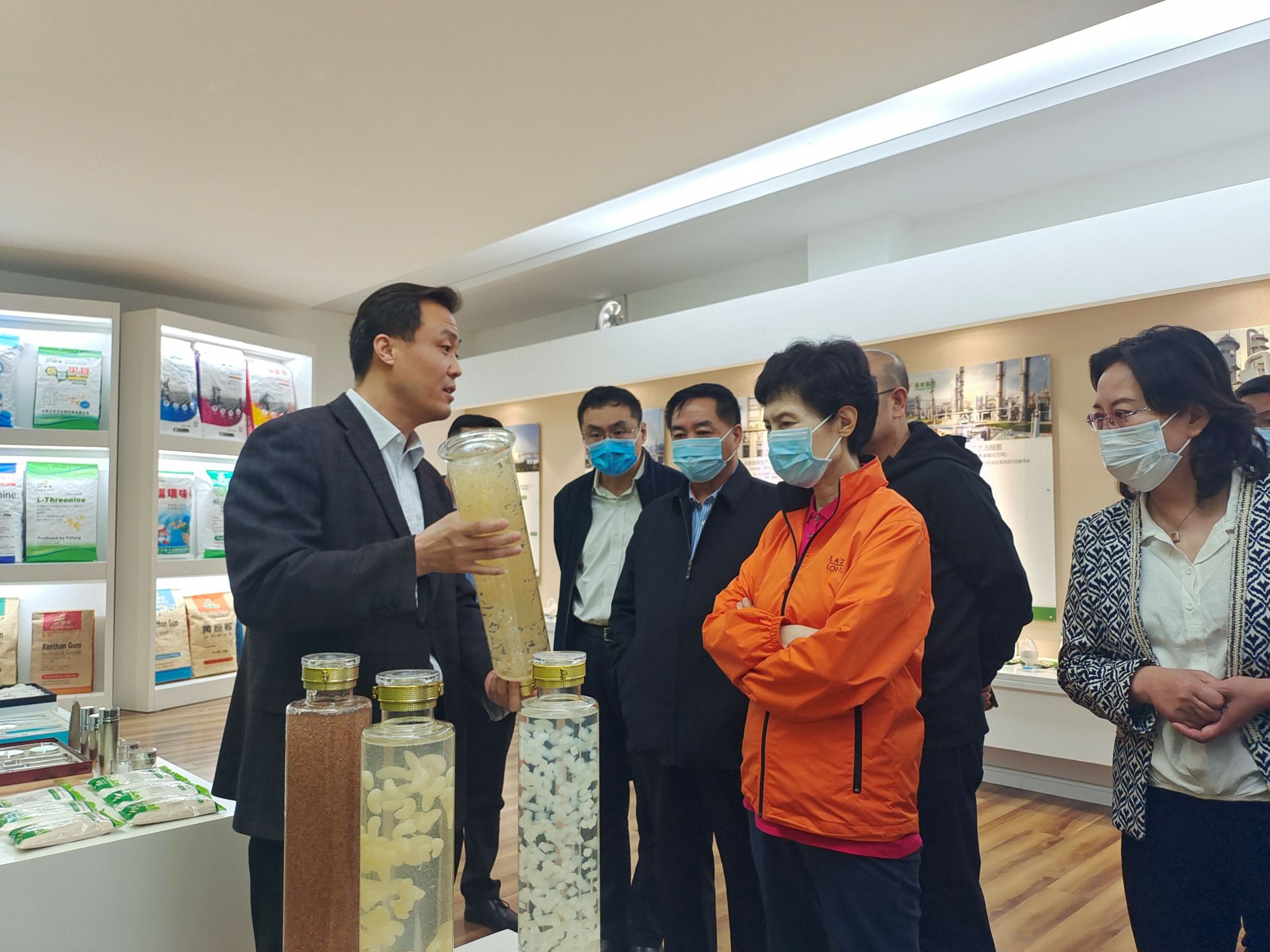 在公司展厅 , 高会长一行人认真听取了李总对于内蒙开云·官方端在线入口-开云(中国)公司的生产、经营情况以及国际贸易现状的介绍,了解了企业在开展对外贸易中存在的困难和问题。