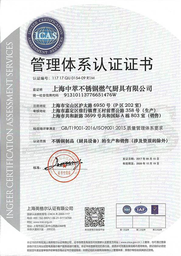 质量管理认证书